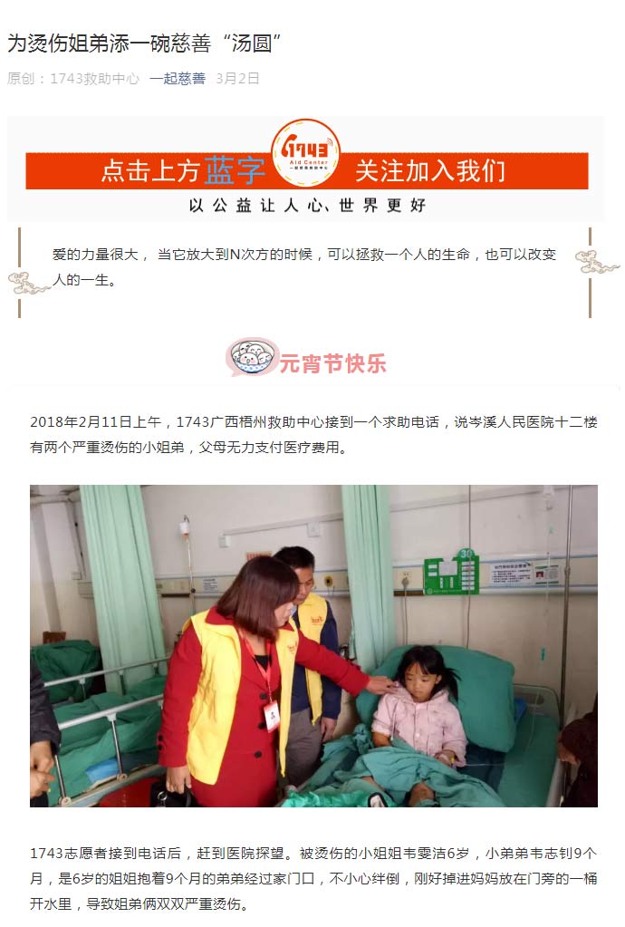 为烫伤姐弟添一碗慈善“汤圆”